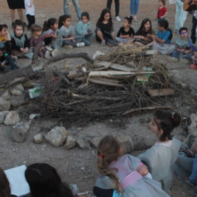 Most, hat örömtűz gyújtással az alija után, a város szélén találtam ünneplőkre. Egy kis, itt élő amerikai csoportra és egy máglyával arébb egy nagyobb közösségre. Nevük Ruah Aviv (Tavaszi szél).