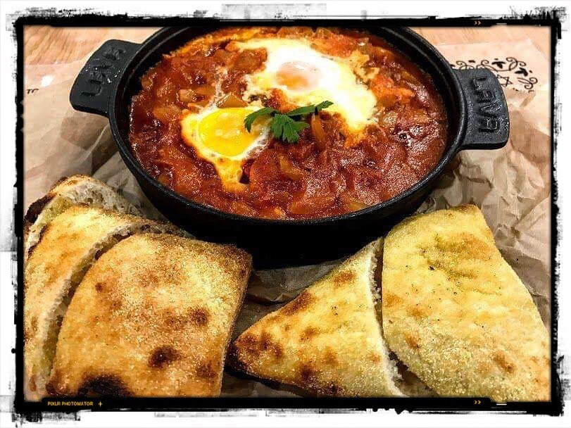 Szerencsére már újra megnyitott, úgyhogy hetente többször betérek oda ismét. Kedvencem a tükörtojásos-spenótos pizza, amelynek tésztája előírásszerűen vékony a közepén és megfelelően vastag, de nem rágós a szélén – egészen pazar! Ajánlom a saksukát is, főleg, hogy ennek az „zsidó lecsónak” végtére is itt van a szezonja. (Nézzék csak a címlapképet, milyen guszta!) Laktató egytálétel, lehet pizzatésztával és pirítóssal kérni, aztán leöblíteni egy hatalmas adag hosszú kávéval.