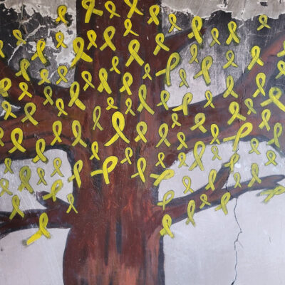 Borítókép: szolidaritási festmény a túszokkal a Beeri Kibucból. Fotó: Mazsihisz.hu