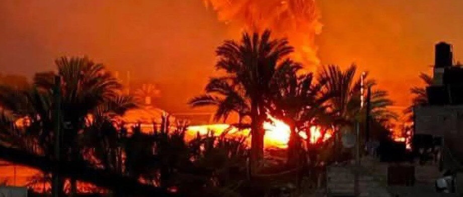 Címlapkép: Tűz egy sátortáborban Khan Yunistól nyugatra az izraeli csapásokat követően 2025. március 18-án. IAF légitámadás ma este
