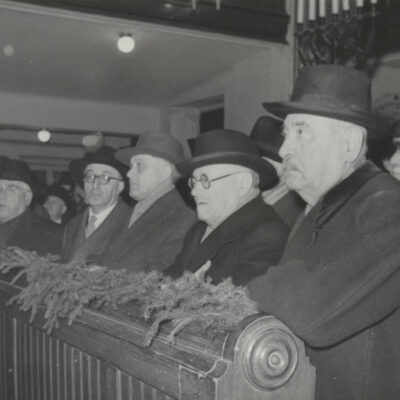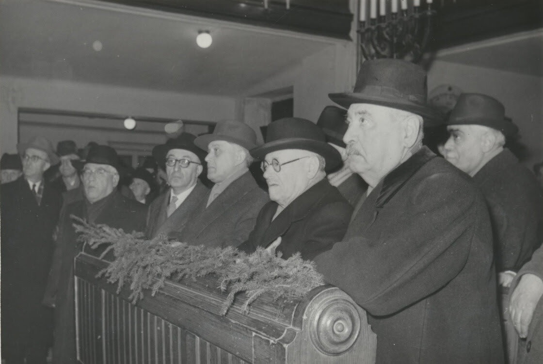 A Magyar Zsidó Múzeum és Levéltár mai hírleveléből egy olyan fotót osztunk meg, amely 65 évvel ezelőtt, 1959. december 6-án készült Végházi István beiktatásán a budai Frankel-zsinagógában. A fénykép Halász Katalin ajándékaként került a gyűjteménybe Láng Viktor hagyatékából. A kép múzeumi adatlapját itt találják.