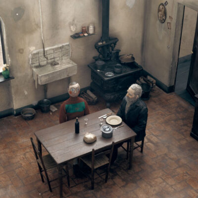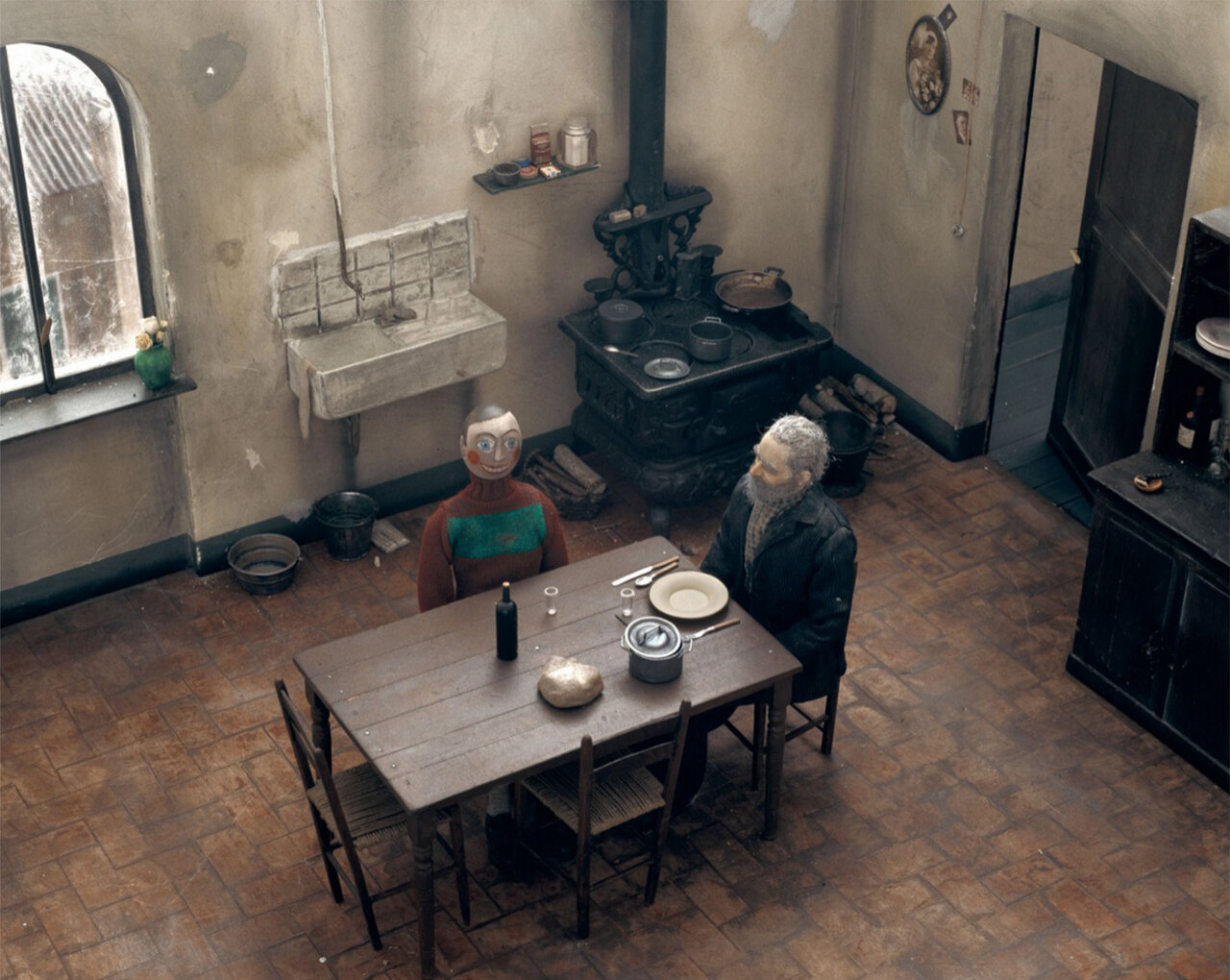 A művész makettekből építette meg a velencei gettót, és e makettek között helyezte e a történet figuráit. A maketteteket később lefotózta, majd összeállította a történet cselekményét attól a naptól kezdve, mikor a zsidó órásban megszületik a robotfiú-társ megépítésének gondolata, egészen addig, míg a gettót kiűrítik. Az órás nem hagyja, hogy a robotfiú (akinek a történet szerint az életét köszönheti) a sötét erők kezébe kerüljön, ezért az automatont…