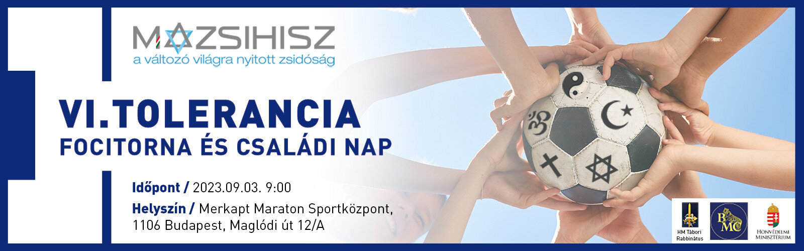 Felekezetek közötti nemes versengés, családi nap és Rumbi Tanház a futballpályán 2023. szeptember 3-án, vasárnap reggel 9 órától, a 25. Zsidó Kulturális Fesztivál kisérőprogramjaként a Merkapt Maraton Sportcentrumban (Budapest X. kerület, Maglódi út 12/A.)
