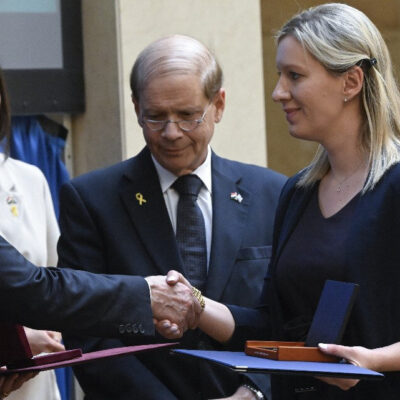 Widmar Antonio Magyarországon élt olasz műfordító, diplomata, felesége, Widmar (Kolozs) Irén és lányuk, Karsai (Widmar) Lucia posztumusz díjait Karsai Zsuzsa, a kitüntetettek dédunokája, illetve unokája vette át.