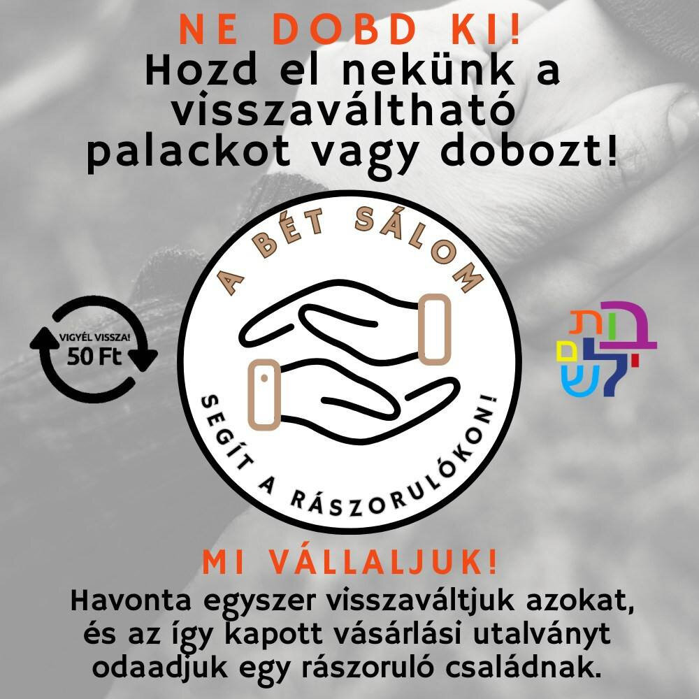 Idén nyáron számoltunk be az újbudai Bét Sálom zsinagóga közösségének jótékonysági kezdeményezéséről, amelynek lényege: a visszaváltható palackok (hivatalos megnevezéssel: italcsomagolás) után járó utalványt a körzet egy-egy rászoruló családnak juttatja.