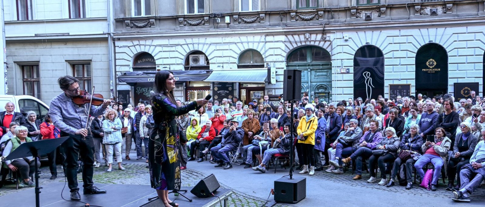 Az első koncerten Jávori Ferenc Fegya, Bíró Eszter és Gazda Bence lépett fel, és különleges hangulatot varázsoltak a nyüzsgő Dob utcába. A megnyitón beszédet mondott Niedermüller Péter, Erzsébetváros polgármestere, majd Dr. Grósz Andor, a Mazsihisz elnöke köszöntötte a megjelenteket, és beszédében kiemelte a koncertsorozat közösségépítő és lélekemelő szerepét.