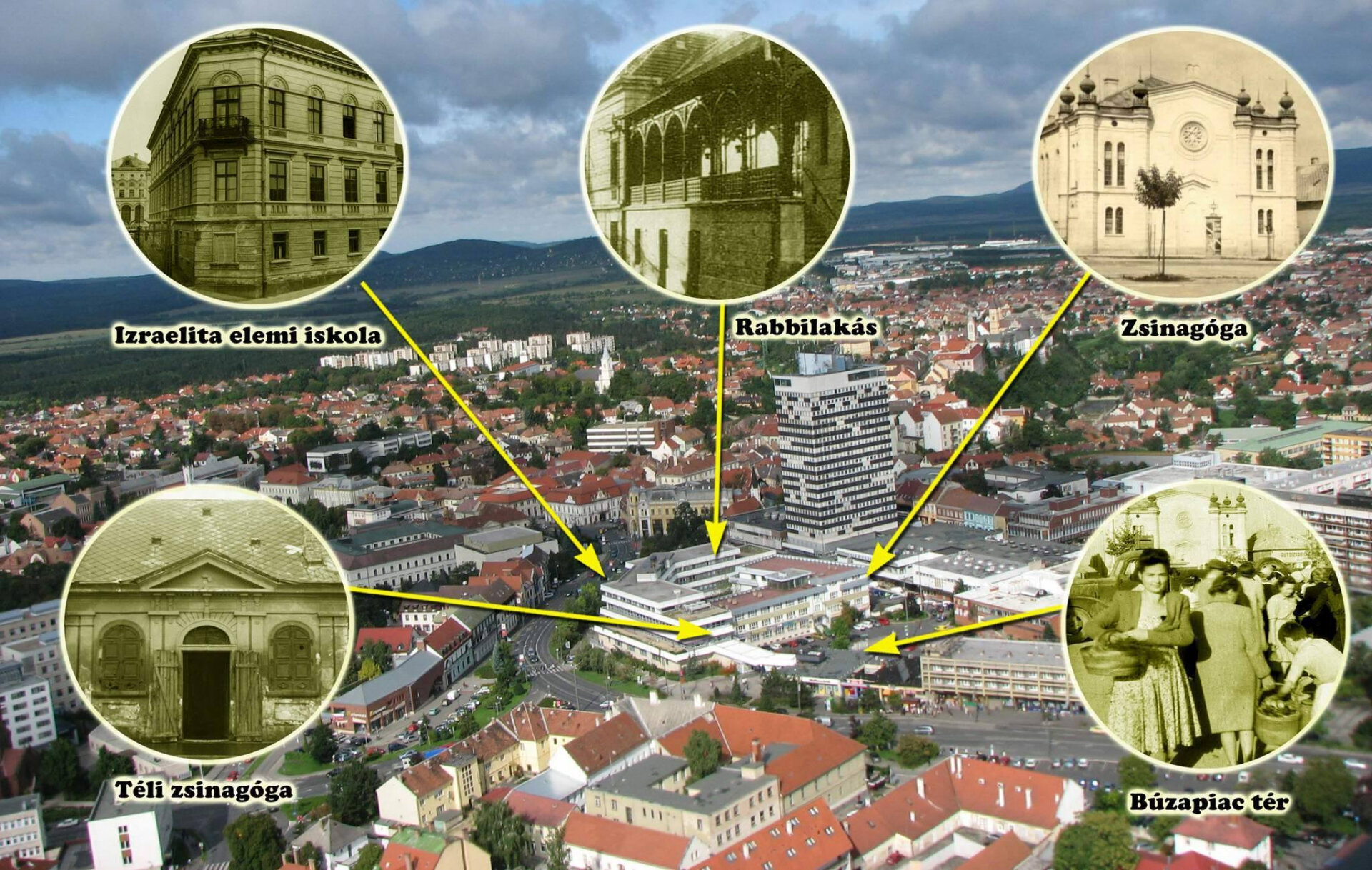 A szép kivitelezésű, vaskos kötet borítóját Bognár Kálmán 1897-ben festett, Veszprémi gabonapiac című festménye díszíti annál az oknál fogva, hogy a képen központi helyet foglal el a helyi zsinagóga. Ugyanilyen fontos szerepet játszott Veszprém társadalom- és gazdaságtörténetében a zsidóság, amelynek létszáma a XIX. század közepére már megközelítette az ezret. Nem csoda, hogy a helyi hitközség a magyar zsidó hitközségek körében  az elsők között volt, amely nyilvános iskolát tartott fönn. A szerzők által is említett Kun Lajos főrabbi 1932-ben foglalta össze a helyi zsidóság történetét, így többek között tőle is tudhatjuk, hogy  a veszprémi zsidók között sok volt az orvos, kereskedő (ezen belül a legnagyobb számban gabona- és lisztkereskedő), ügyvéd, tisztviselő, iparos. Vallási és világi vezetőiknek nagy szerepük volt a város szellemi fejlődésében. A közösség virágzó életét a XX. század első fele – a kötet fogalomhasználatával élve – egyre szűkülőbb terekbe terelte, majd a vészkorszak törte derékba.
